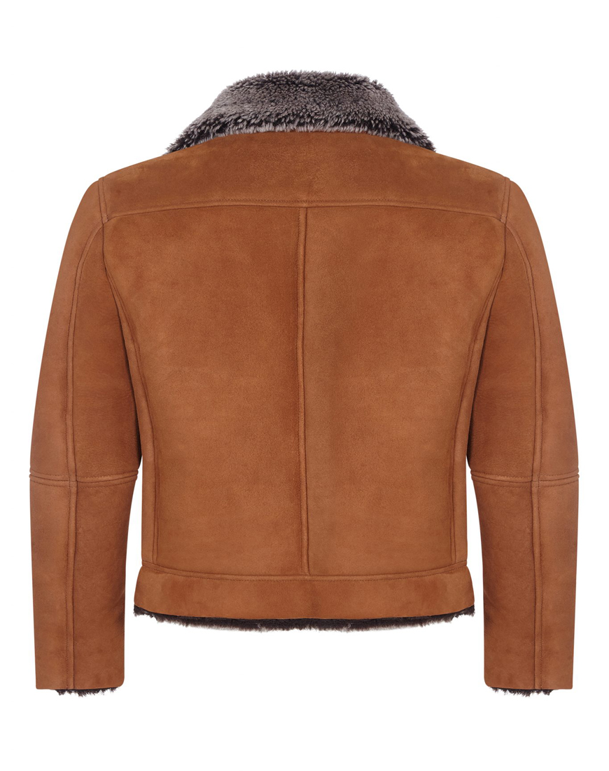 The outer shell is made with genuine sheep leather, and inner shell is made with imported fur. The shearling includes two front pockets and two internal pockets. The front opening and pockets are fitted with genuine YKK zippers. The stitching is covered with leather straps to provide longer life to shearling. The collar is attached with leather strap with metal buckles to provide protection to neck in cold weather.