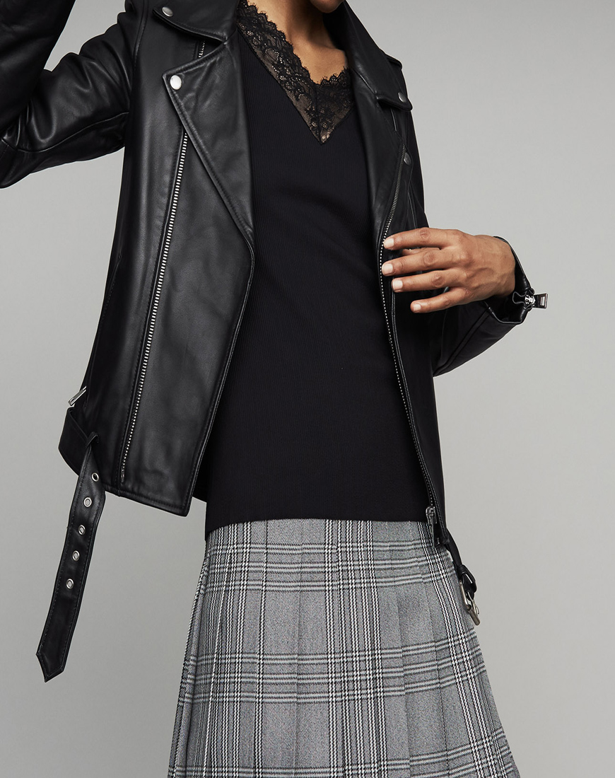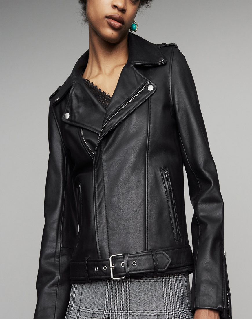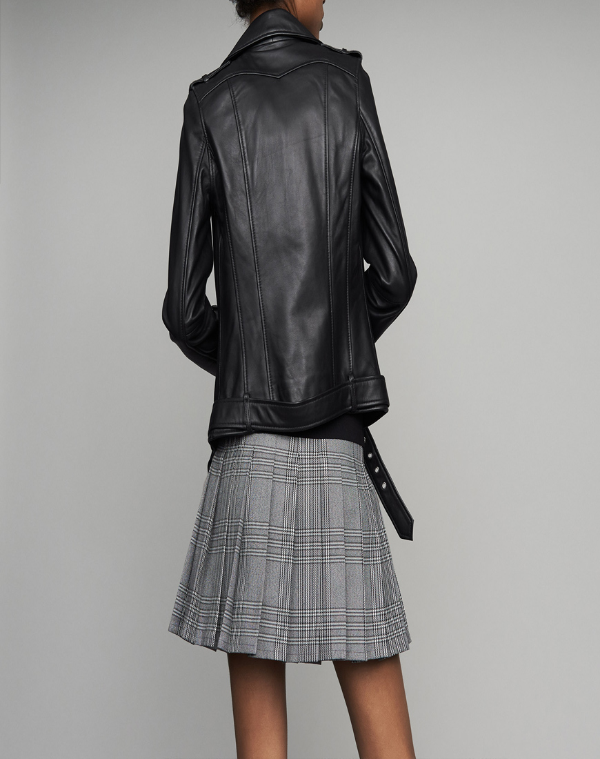 The outer shell is made with 100% genuine high grade sheep leather and inner shell is made up with high quality imported quilting. The collar is foldable and it also allows easy use with helmet and neck warmers. The jacket includes 2 inside pockets and two pockets on the front fitted with YKK zippers the waistline includes leather hooks attached with metallic buttons to give it a true stylish looks.