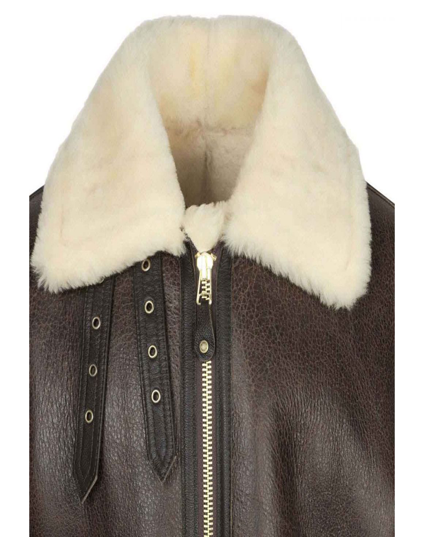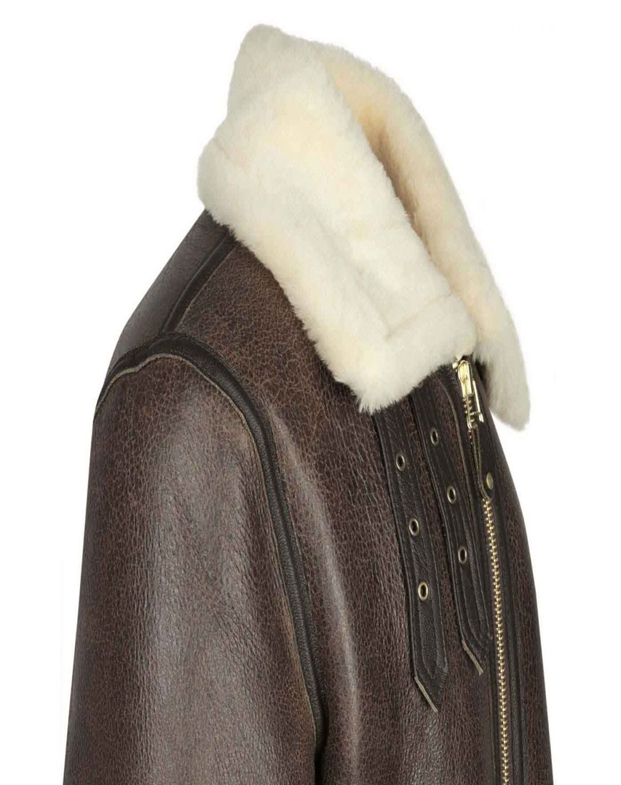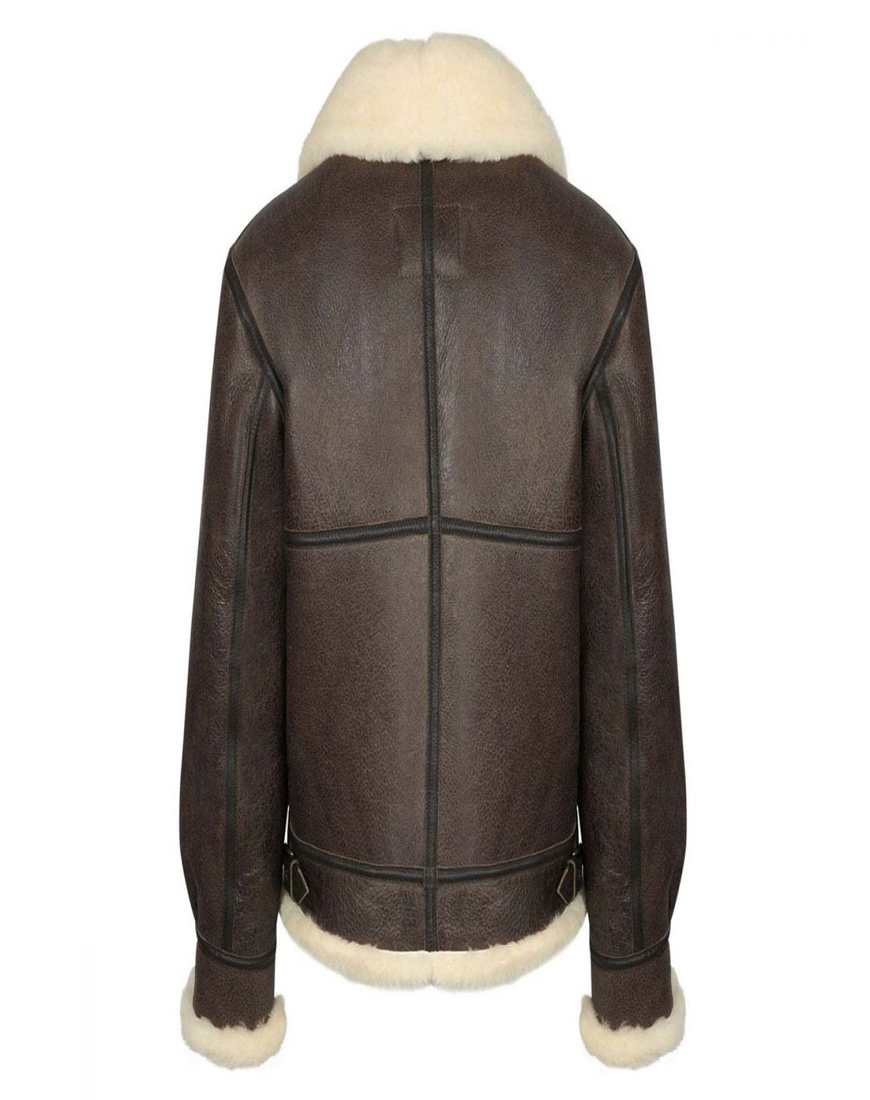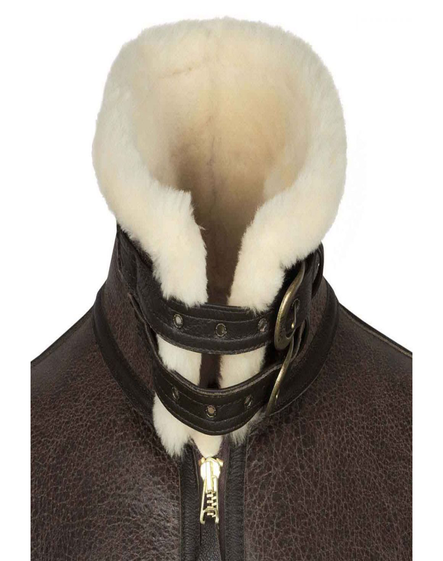 The outer shell is made with genuine sheep leather, and inner shell is made with imported fur. The shearling includes two front pockets and two internal pockets. The front opening and pockets are fitted with genuine YKK zippers. The stitching is covered with leather straps to provide longer life to shearling. The collar is attached with leather strap with metal buckles to provide protection to neck in cold weather.