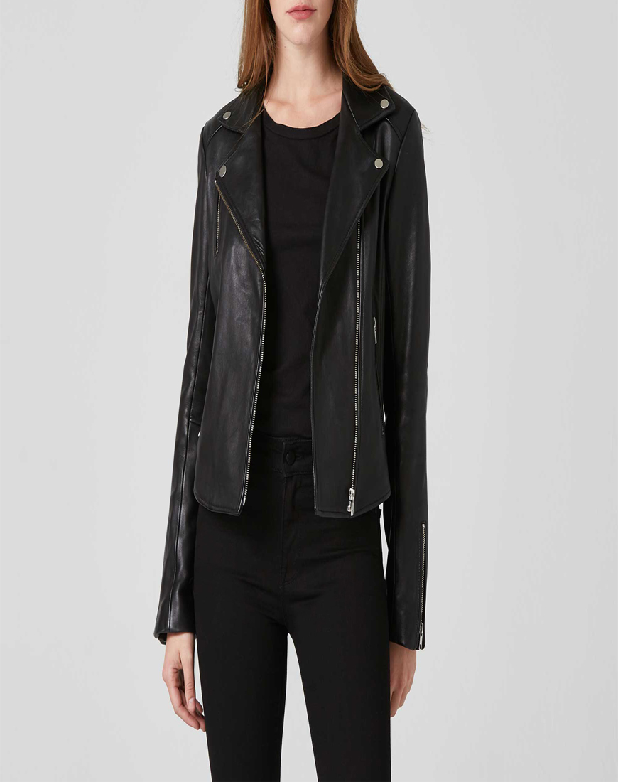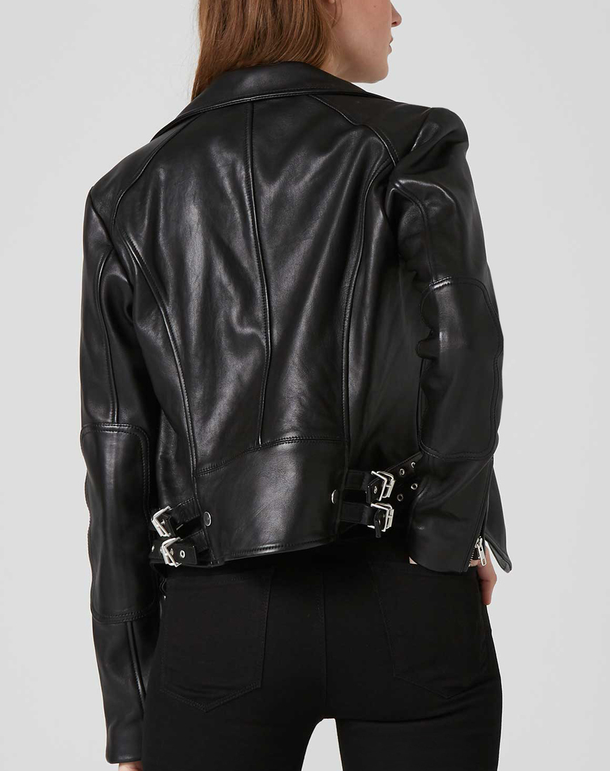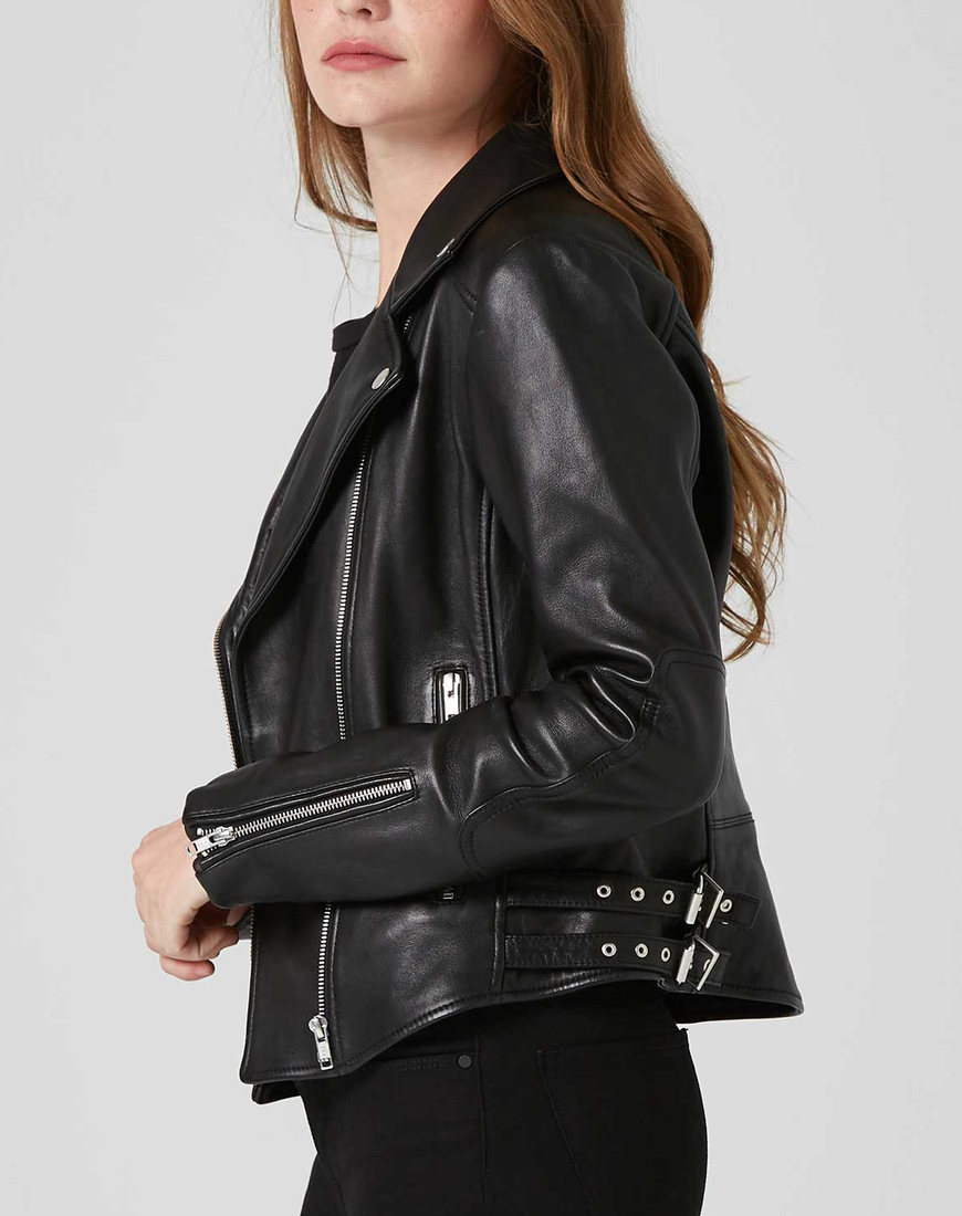 The outer shell is made with 100% genuine high grade sheep leather and inner shell is made up with high quality imported quilting. The collar is foldable and it also allows easy use with helmet and neck warmers. The jacket includes 2 inside pockets fitted with YKK zippers. The waistline includes leather hooks attached with metallic buttons to give it a true stylish looks.