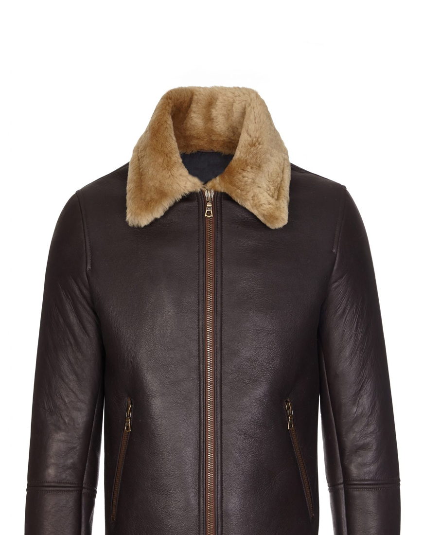 The outer shell is made with genuine sheep leather, and inner shell is made with imported fur. The shearling includes two front pockets and two internal pockets. The front opening and pockets are fitted with genuine YKK zippers. The stitching is covered with leather straps to provide longer life to shearling. The collar is attached with leather strap with metal buckles to provide protection to neck in cold weather.